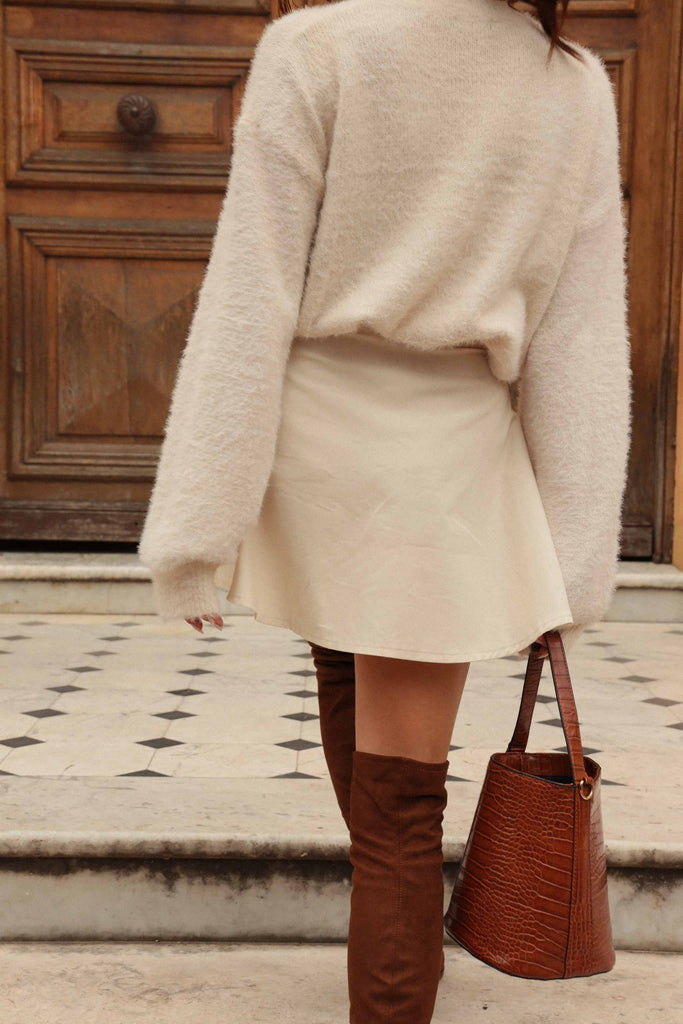 Digitales Schnittmuster für den Odette-Rock! Mit hoher Taille, A-Linien-Schnitt und einem unsichtbaren Reißverschluss auf der Rückseite in der Mini-Version. Hergestellt aus Cordstoff.
