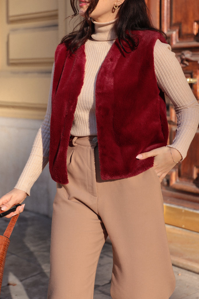 Patrón de costura digital para el chaleco Penelope. ¡El chaleco está completamente forrado con bolsillos invisibles laterales, hecho de tela de piel sintética y forro de satén.