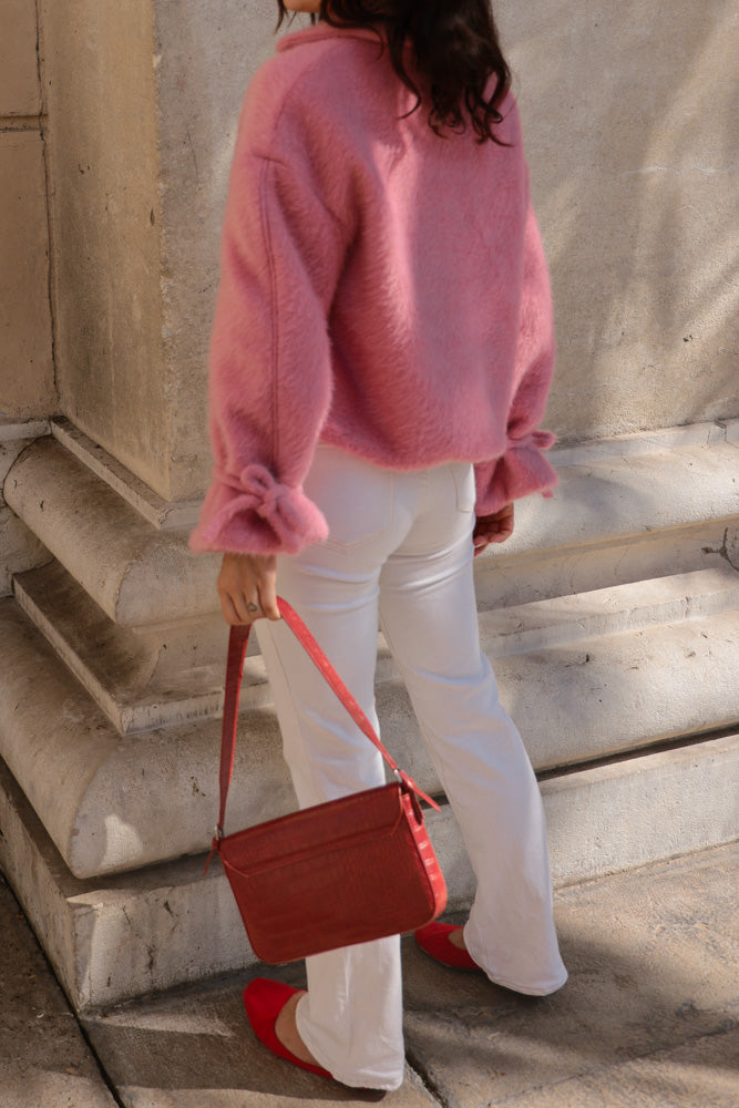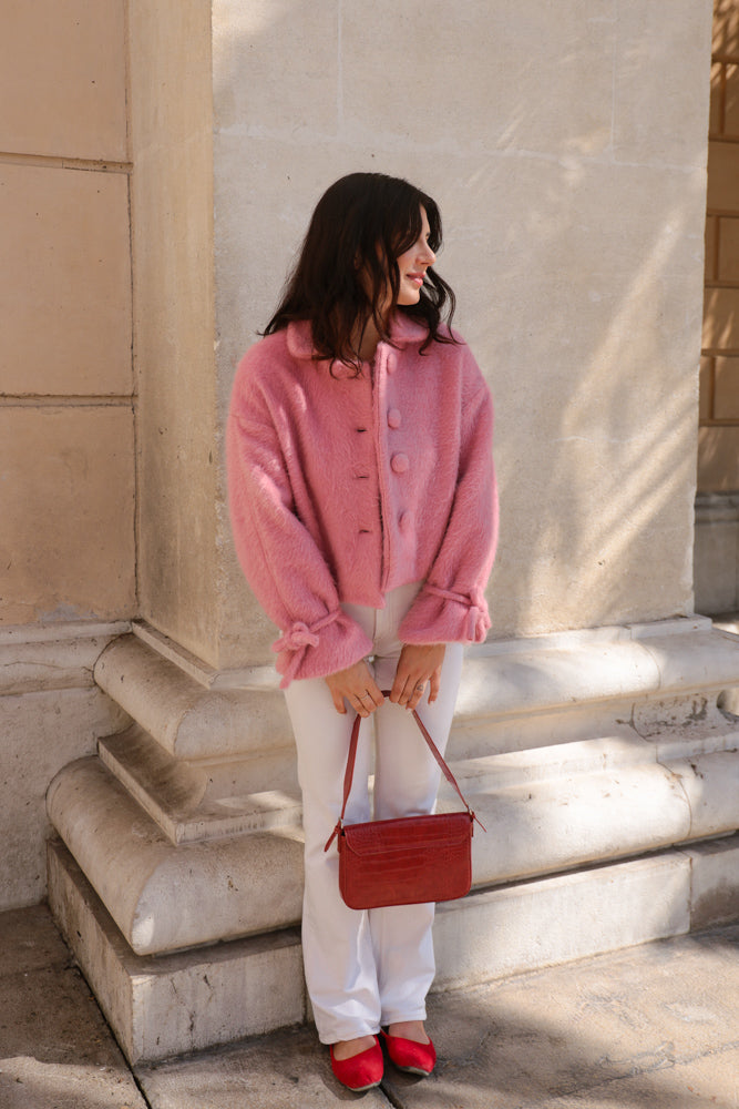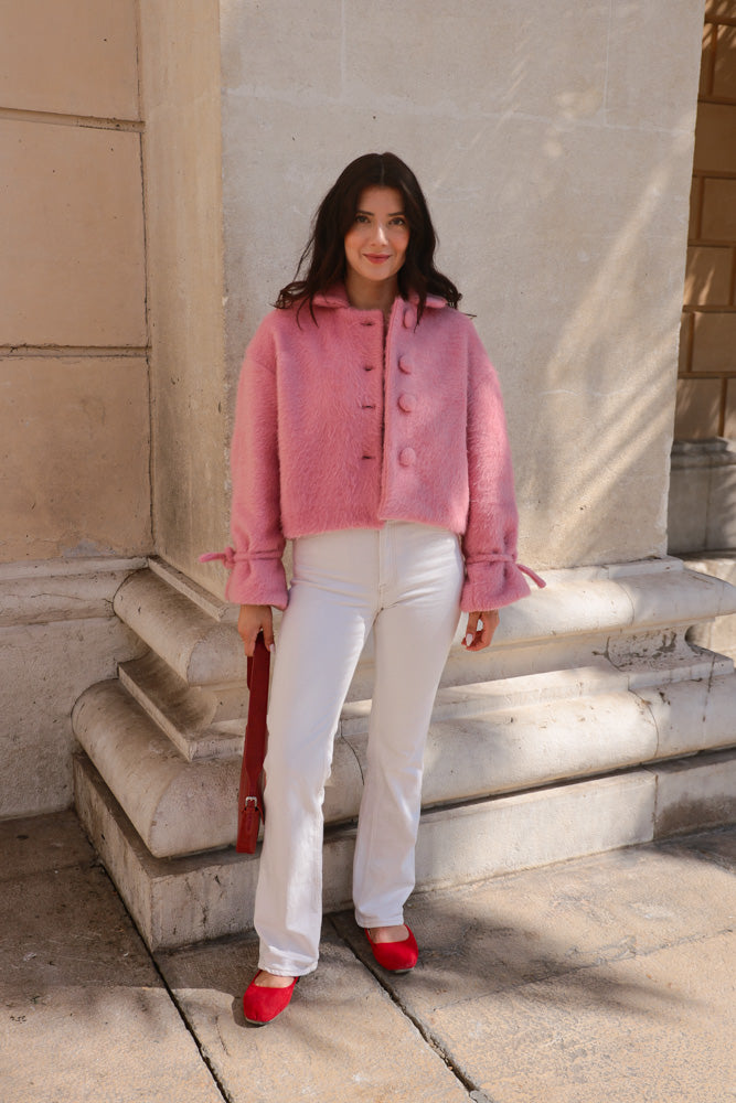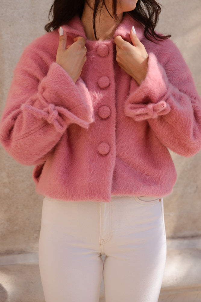 Patron de couture numérique du manteau Élodie ! Entièrement doublé, il est doté de poches latérales invisibles, de boutons recouverts et de manches à nœud papillon. Il est confectionné en laine et doublé en satin.