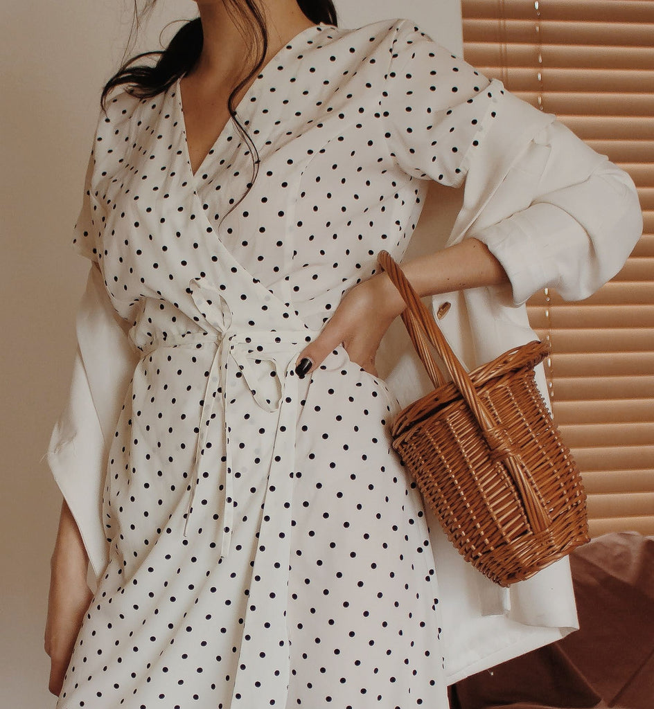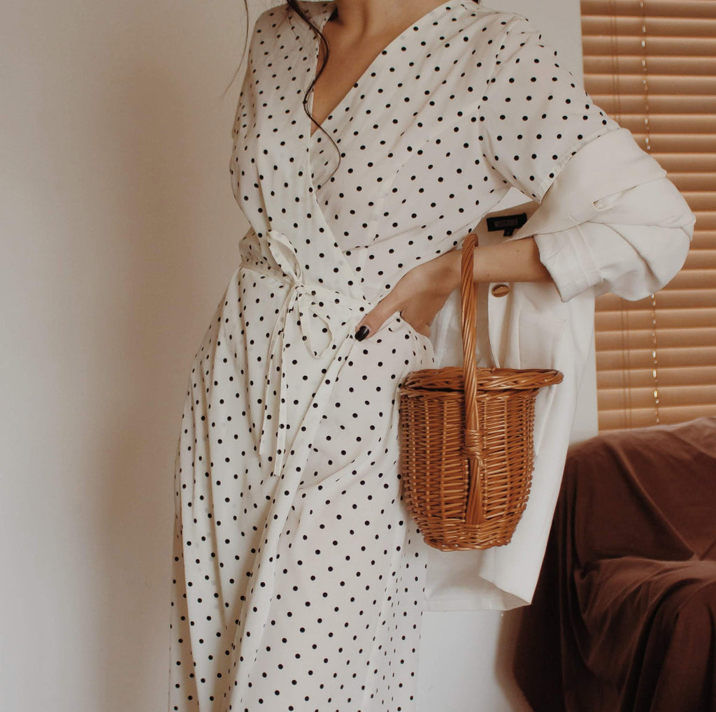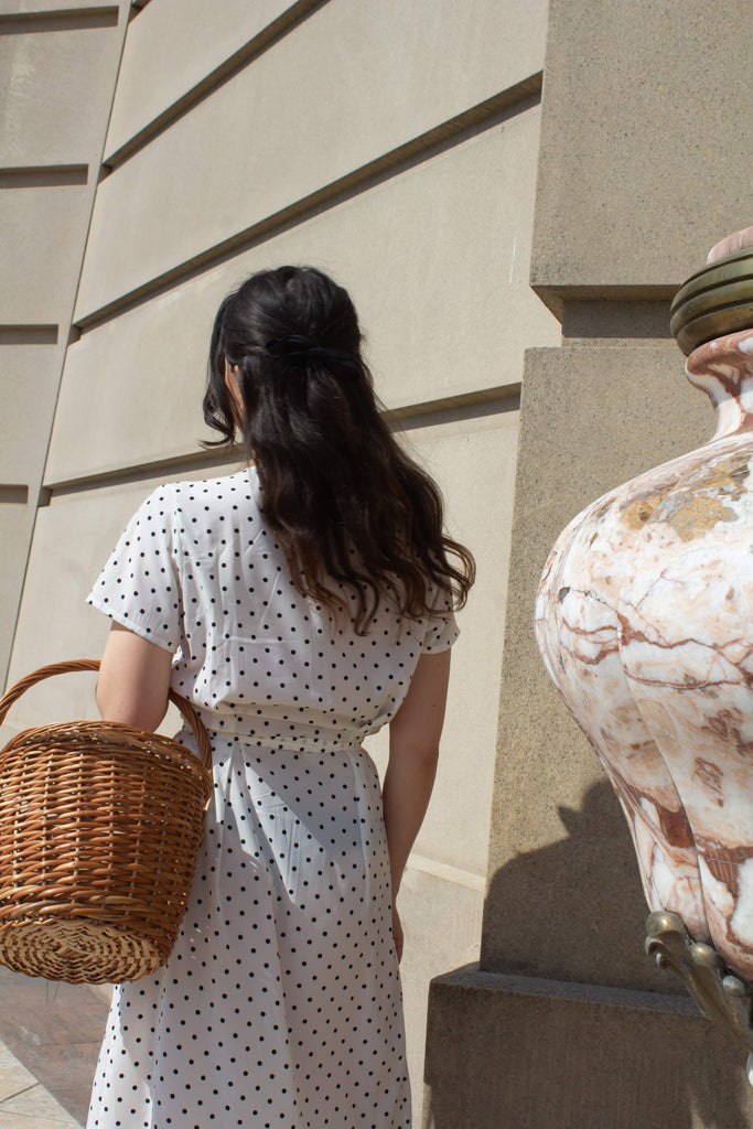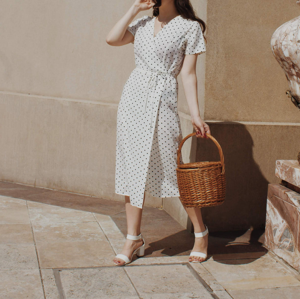Roselyn Button Polka Dot Midi Dress